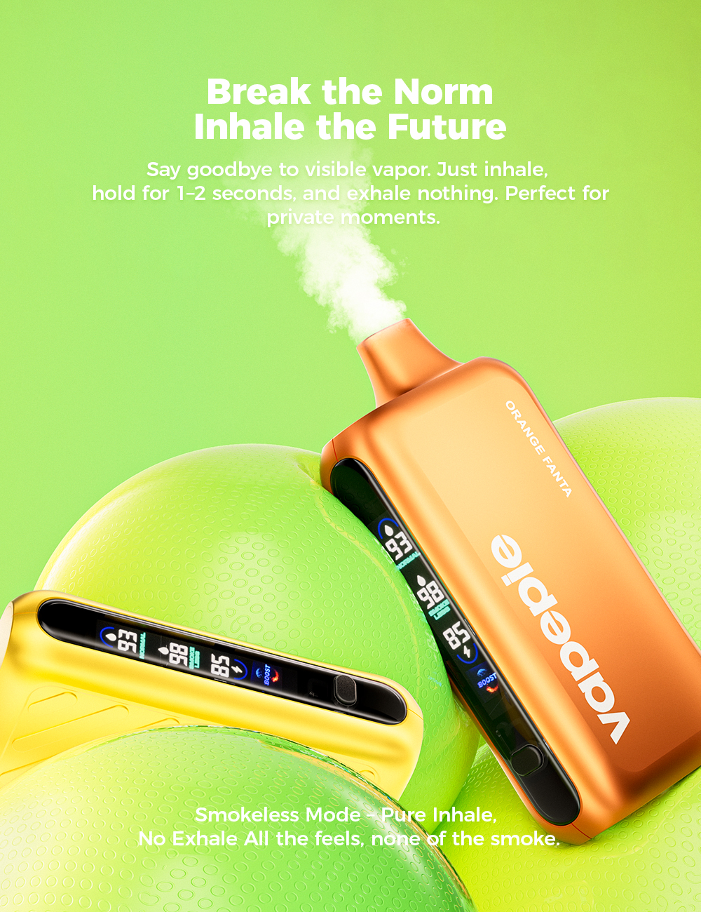 • Režim Smokeless – Žádná viditelná pára při výdechu. Stačí se nadechnout, zadržet 1–2 sekundy a vydechnout neviditelně. Ideální pro diskrétní použití.