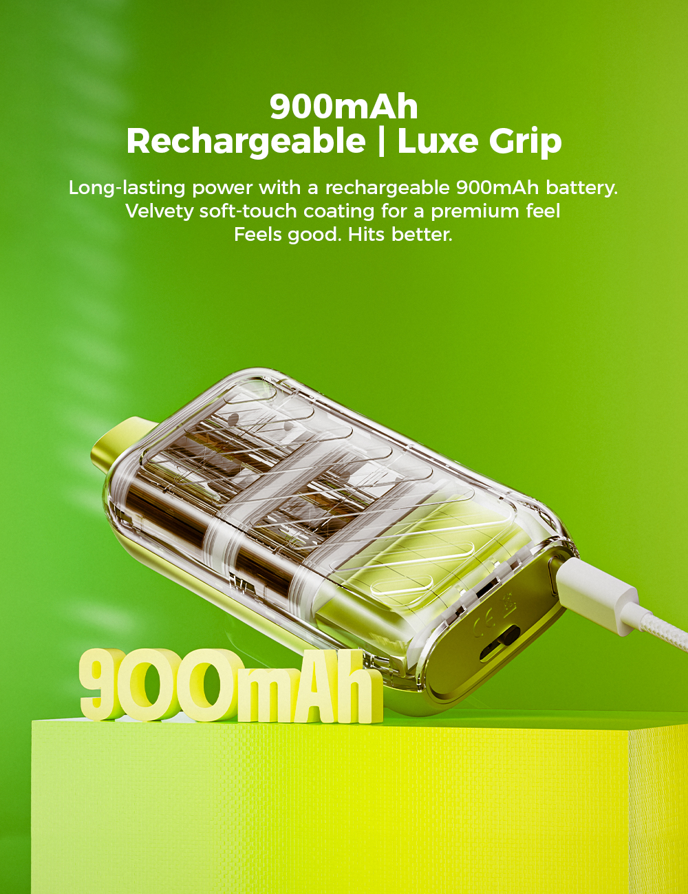 • Dobíjecí baterie 900 mAh – Dlouhá výdrž s rychlým nabíjením přes USB Type-C.