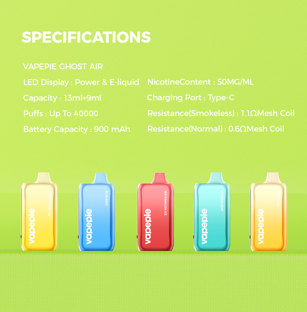 Vapepie GhostAir 40000 Puffs je špičková jednorázová e-cigareta navržená pro budoucnost diskrétního a vysoce výkonného vapování. Díky duálnímu režimu, chytrému LED displeji a luxusnímu sametově hebkému povrchu přináší GhostAir elitní zážitek od prvního do posledního potahu.